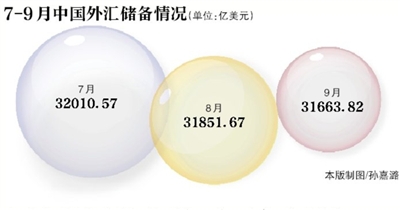 新京报讯 (记者赵毅波)随着人民币贬值预期升温,外汇储备继续下滑,央行10月7日公布,9月外汇储备余额31663.8亿美元,较8月下滑188亿美元,创下2011年6月以来最低值。