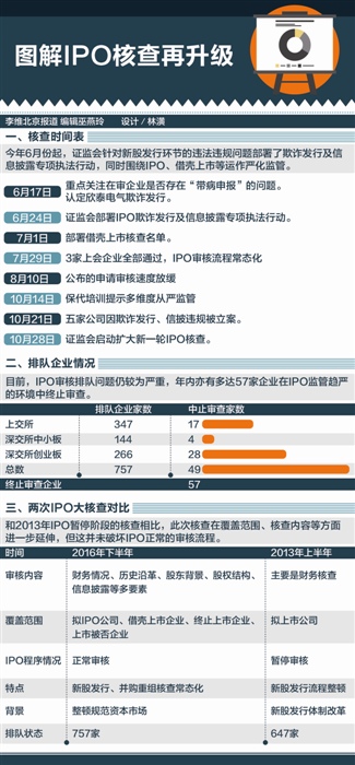 事实上,今年年中以来证监会开展并不断升级的监管核查,也激起了不少投行人士对两年前IPO暂停阶段的财务大检查的回忆,只是这一次,IPO的申报和批文却并未暂停。