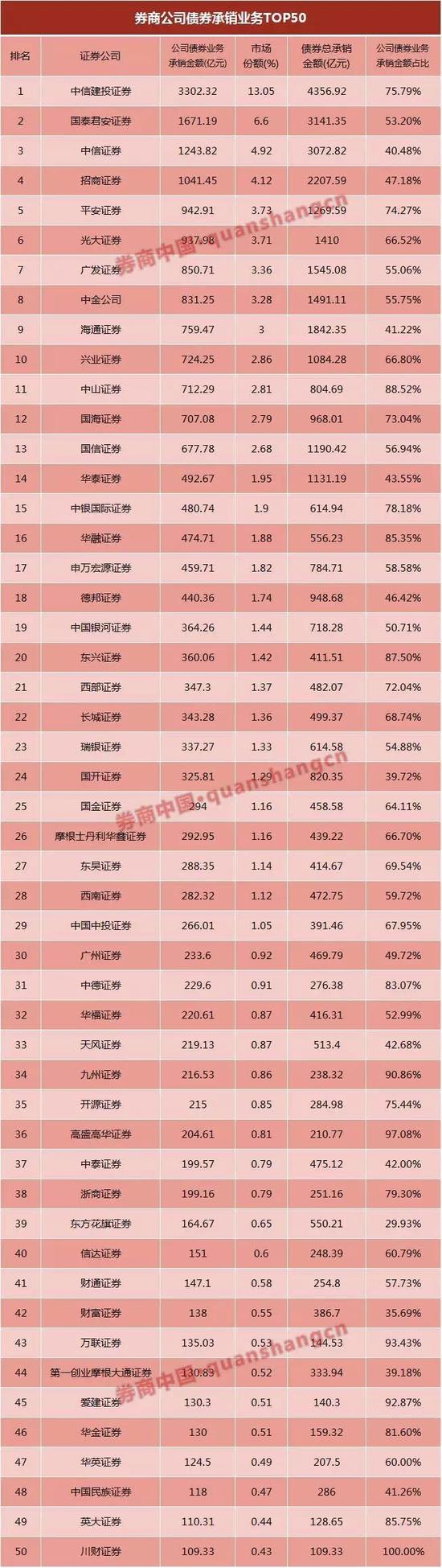截至发稿前,记者尚未确认哪家中小券商收到了监管“红牌”。知情人士向记者透露,快速发力公司债业务以期实现“弯道超车”的这家中小券商,业务排名进入行业前50,谜底在下表中: