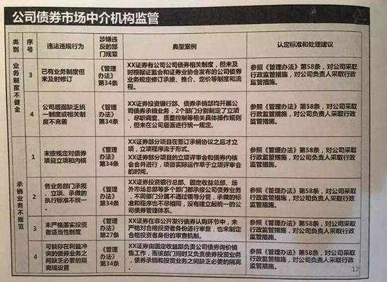 该人士向记者透露,在此前的针对近百家开展公司债券业务的券商高管的培训会上,监管部门权威人士已明确,券商公司债业务存在“业务制度不健全、承销业务不规范、尽职调查不勤勉、受托管理未尽责”四大违法违规行为,并相应列出了认定标准及处罚措施。