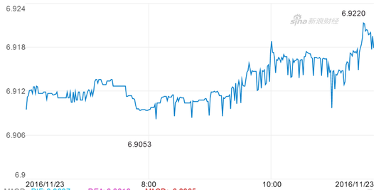 新浪财经讯 11月23日消息,离岸人民币早盘下跌逾100点,首次跌破6.92关口,再度刷新历史纪录新低,现报6.9207。