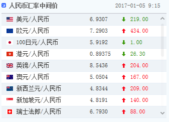 新浪财经讯 1月5日消息,早间外汇交易中心发布公告,人民币汇率中间价报6.9307,较前一交易日大幅升值219个基点,创一个月来最大升幅。此外,离岸人民币隔夜存款利率一度飙升16.5个百分点,至2016年1月以来的高点30%。美元兑离岸人民币明日次日远期点飙升至2016年1月以来的最高水平125。