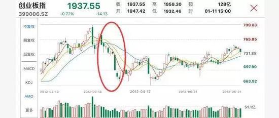 而这一情景与2012年3月份创业板九连跌十分相似,彼时创业板公司突破300家,让创业板股票不再“稀缺”,市场对于小盘股的喜爱亦有所下降,从而导致创业板行情萎靡,跌跌不休。