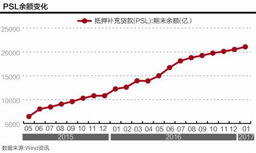 Wind数据显示,2017年1月新增PSL规模543亿元,余额达2.11万元,同比增长72.95%。