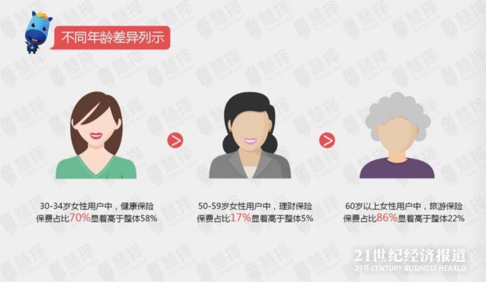 根据互联网保险的消费人群画像,30岁成为消费者开始添置保险装配的一个时间点,进入而立之年的女性消费者大多组建了家庭,对保险产品的需求和消费能力都有了大幅提升,但是各个年龄层的女性在选购保险时所青睐的可是各有不同。