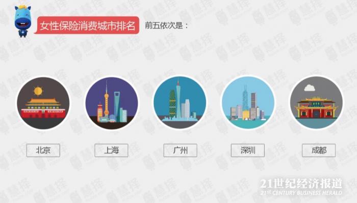 女性消费者在买保险的时候毫不含糊,慧择网的数据显示,与以往一样,北京和上海在保险消费榜首上展开了帝都和魔都的日常较量,而此次北京姑娘以更高的保费支出赢回一局,广州、深圳、成都仍然稳稳地紧随其后。
