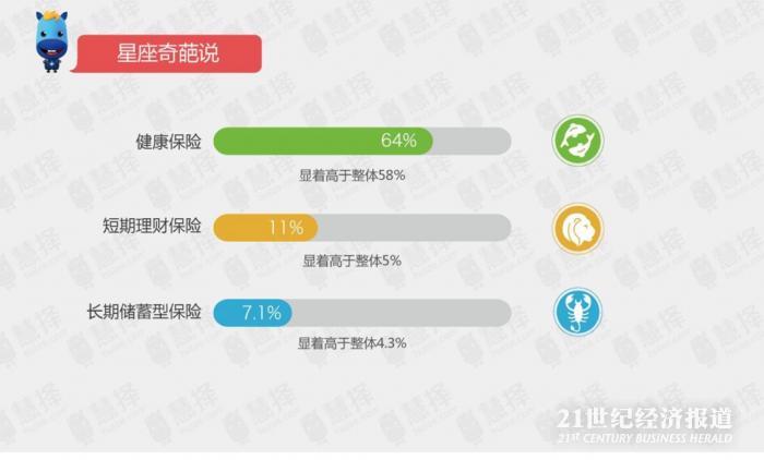 与双鱼妹子的反转不同,狮子和天蝎投保的偏好与她们的星座特质恰好吻合,狮子女热情果敢,青睐收益较高的短期理财产品,而天性理智隐忍的天蝎则“放长线钓大鱼”,选择年金、终身寿等储蓄型保险来做长期投资,娶了天蝎妹子当真受“益”匪浅。