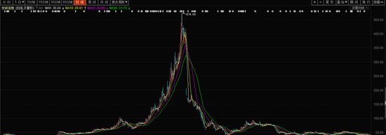 安硕信息,2014-2015年大A股风头最劲的股票。从2014年4月30日28.30元一路上涨至2015年5月13日450元,区间涨幅达到15.9倍。