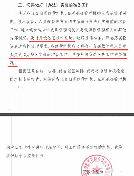 据券商中国记者了解,安徽证监局近日发布最新通知,要求辖区各证券期货经营机构、私募基金管理机构从“管理制度、技术设备、人员配备”等方面切实做好《办法》实施前的准备工作。