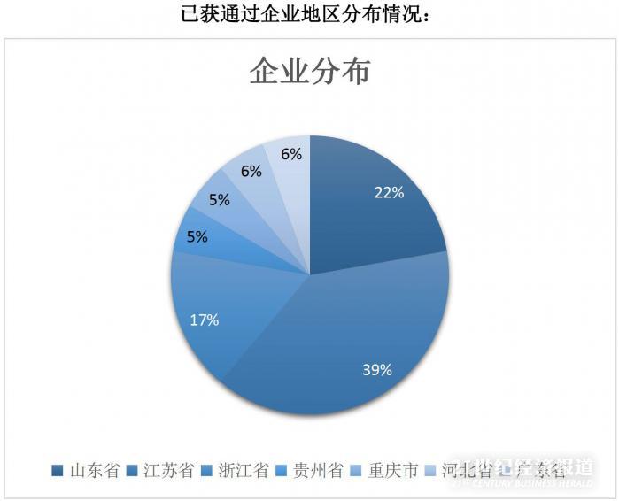 这18家获发审委审核通过的企业来自七个省市,分别是江苏省、山东省、浙江省、重庆市、贵州省、广东省和河北省。其中数量最多的江苏省,通过了7家首发企业,其次是山东省通过了四家企业,排名第三的浙江省通过3家企业。