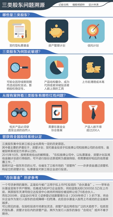 “三类股东”指的是资管计划、契约型基金或信托产品。自去年初,“三类股东”问题浮出水面后,相关问题一直是拟IPO企业的心头病。