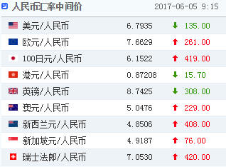 新浪财经讯 6月5日,人民币兑美元中间价报6.7935,较上一交易日升值135个基点。续创逾半年最强。