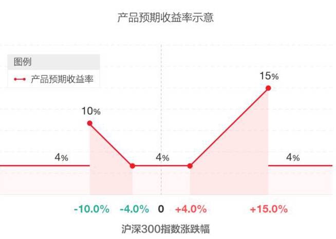 在沪深300指数涨跌幅4%以内,或上涨15%以上,或下跌10%以上时,该产品的收益率均为4%。