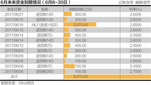 对于流动性而言,6月是一个关键时点。据wind数据显示,未来6月(8日~30日)仍将有3500亿逆回购到期,此外6月16日还有2070亿MLF到期,到期压力不可谓小。