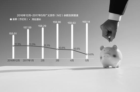 5月末M2余额为160.14万亿元,同比增长9.6%,增速分别比上月末和上年同期低0.9个和2.2个百分点。