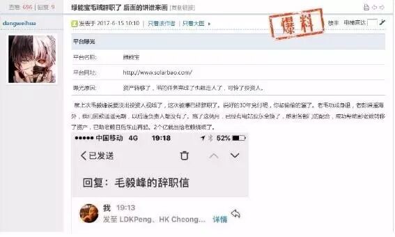6月15日,有投资者爆料,毛毅峰已经请辞。此爆料一出,维权群炸开了锅:兑付计划恐怕要泡汤了。