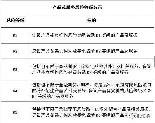 包括“证券公司、证券公司子公司以及证券投资咨询机构”在内的证券经营机构向投资者销售证券期货产品或者为投资者提供相关业务服务时,应当了解产品或服务的信息,依据《产品或服务风险等级名录》制作风险等级评估文件,由低至高划分,也为五类:即低风险、中低风险、中风险、中高风险、高风险。
