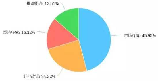 对于上半年收益影响的最大因素,多数私募认为“市场行情”是影响上半年收益的最关键因素,占比达45.95%;其次是“行业政策”,占比为24.32%;认为“操盘能力”的私募占比为13.51%。