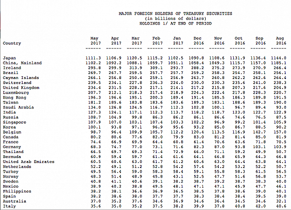 中国连续四月增持美债 持有总量达1.10万亿美元