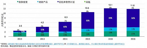此外,穆迪统计的26家上市银行的“应收款项类投资”余额,也从2016年6月的12.1万亿元降至2016年底的11.8万亿元 。