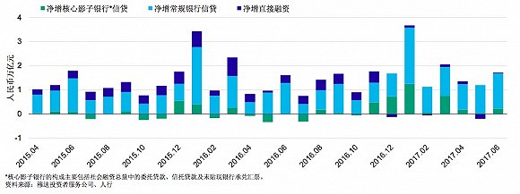 二季度,常规银行贷款在社会融资增量中的占比显著上升,“核心”影子银行活动因委托贷款减少而较上季度有所下降,但新增信托贷款依然势头强劲 。