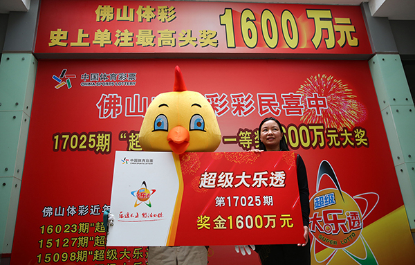 广东省佛山市一名体彩彩民,扮成“公鸡”造型,领到1600万元奖金。视觉中国资料图