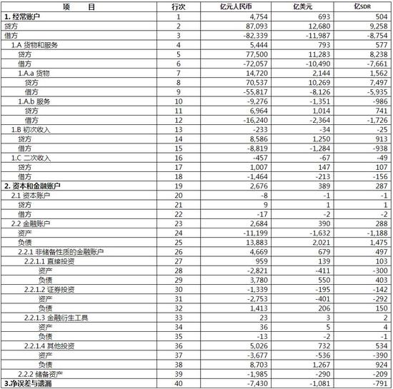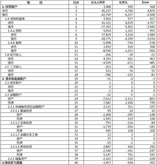 3.季度人民币计值的国际收支平衡表数据,由当季以美元计值的国际收支平衡表,通过当季人民币对美元季平均汇率中间价折算得到,季度累计的人民币计值的国际收支平衡表由单季人民币计值数据累加得到。