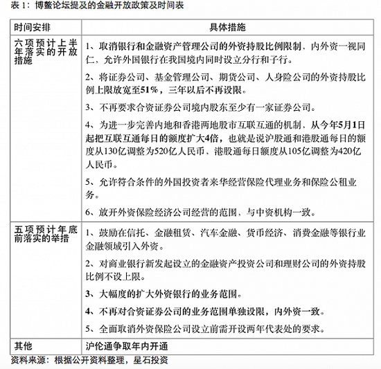 随后,在博鳌年会的其他分论坛上,中国金融监管领域的最高负责人也相继透露了在金融领域的开放具体落地措施和细则。