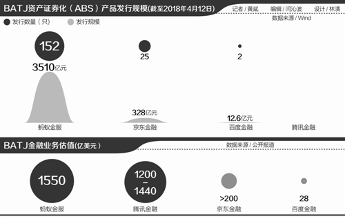 相比之下,另外几家互联网金融巨头逊色得多。2015年9月15日,京东金融发行了类似的ABS,截至目前,发行25期,总发行量为328亿元;百度“有钱花”,发了两期,总规模12.6亿元。
