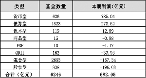 随着公募基金2018年一季报披露结束,基金公司旗下基金的盈利情况浮出水面。天相投顾数据显示,截至今年一季度末,公募基金公司旗下基金整体盈利682.05亿元,相较于去年四季度末的1317.63亿元大幅下滑。其中,货币基金盈利785.04亿元,在各类型基金中排名首位。受A股市场大幅震荡拖累,混合型和股票型基金分别亏损157.34亿元、196.08亿元。