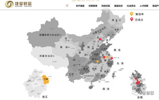 为了显示其实力,捷量公司在一张中国地图上绘出其分布图,分支机构遍布全国各地。
