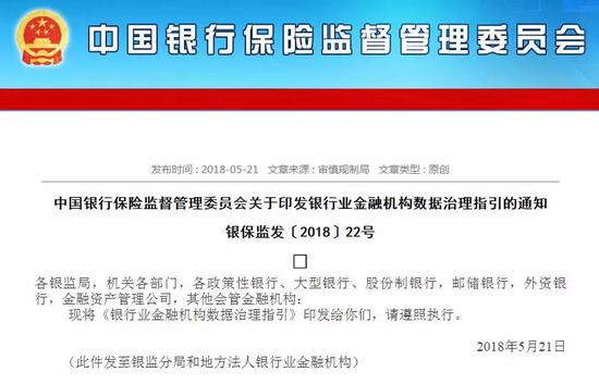 5月21日,银保监会发布《银行业金融机构数据治理指引》(以下简称《指引》),以取代银监会2011年颁布的《银行监管统计数据质量管理良好标准(试行)》(以下简称《良好标准》)。