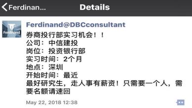 记者询问这种担保的实习机会是否确实有效,上述“应届金融学子”称,“我的小伙伴在深圳一些券商实习,同一个组里时不时会有一些VIP。”