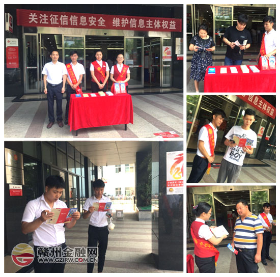 为切实做好金融知识普及和宣传工作,提升市民的金融素养。2018年6月14日,中信银行赣州分行组织专人,在网点及周边财智广场开展6.14征信宣传日系列活动,活动主题是“关注征信 守住钱袋子”。通过拉横幅、贴海报、发放宣传物料及宣传折页的形式,向网点内办理业务以及过往的市民宣传征信知识,提示非法集资的风险,守住钱袋子。通过宣传活动营造了良好的金融知识普及氛围,提升市民的金融素养,发挥金融工作者的宣传工作职能,预防金融违法犯罪活动。