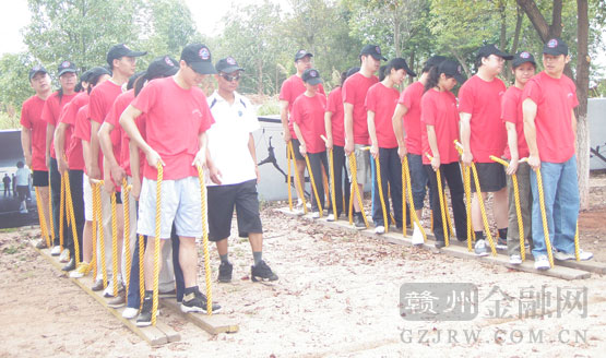(赣州金融网讯)7月31日,南昌银行赣州分行的全体员工来到五龙客家风情园,进行了一场别开生面的户外拓展训练。拓展训练以小组对抗的形式展开,在两位行长的带领下进行了有轨列车、空中断桥、巨人梯等项目的比拼。通过活动,加强了员工间的沟通,提升了团队凝聚力,该行“企业文化月”活动圆满画上句号