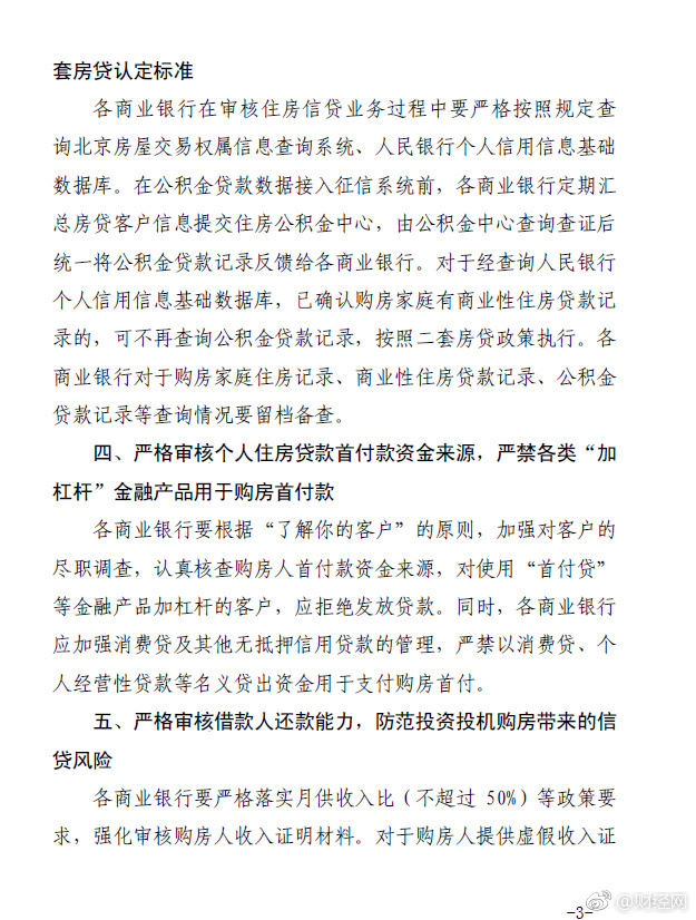各商业银行要根据“了解你的客户”的原则,加强对客户的尽职调查,认真核查购房人首付款资金来源,对使用“首付贷”等金融产品加杠杆的客户,应拒绝发放贷款。同时,各商业银行应加强消费贷及其他无抵押信用贷款的管理,严禁以消费贷、个人经营性贷款等名义贷出资金用于支付购房首付。
