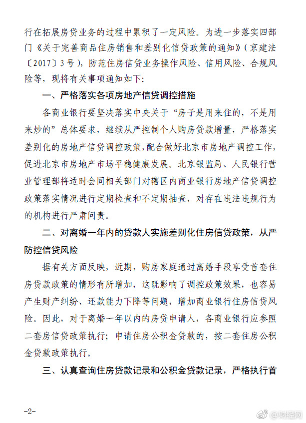贷款快速增长,各商业银行在拓展房贷业务的过程中累积了一定风险。为进一步落实四部门《关于完善商品住房销售和差别化信贷政策的通知》(京建法〔2017〕3 号),防范住房信贷业务操作风险、信用风险、合规风险等,现将有关事项通知如下: