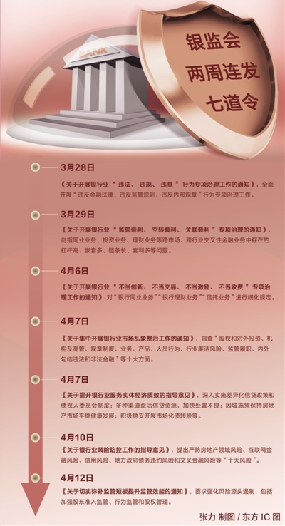 不到两周时间,银监会密集发布7大文件,整治“三违反”“三套利”“四不当”,提出防范“十大风险”。