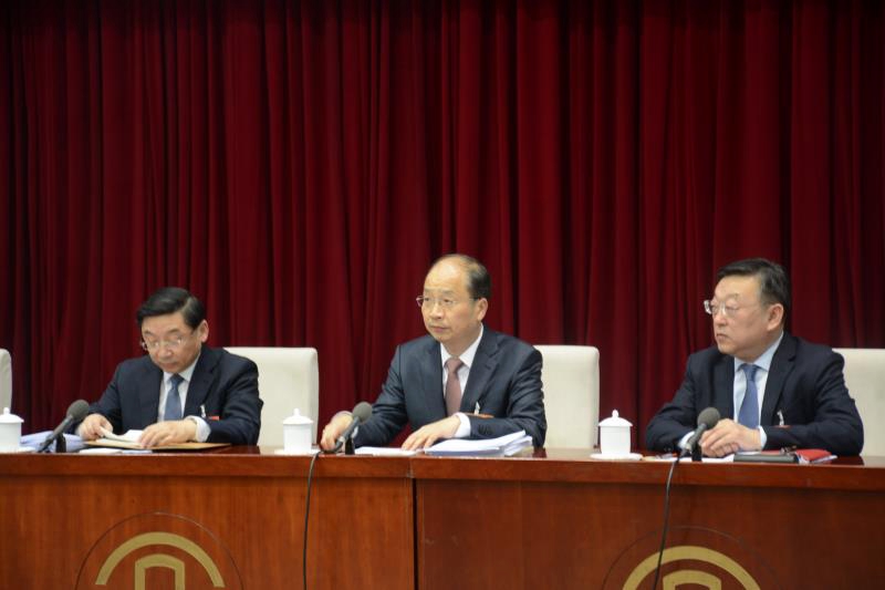 3月5日,中国证监会主席易会满(中)参加十三届全国人大二次会议福建省代表团全体会议。(《中国金融家》记者 李丹 摄)