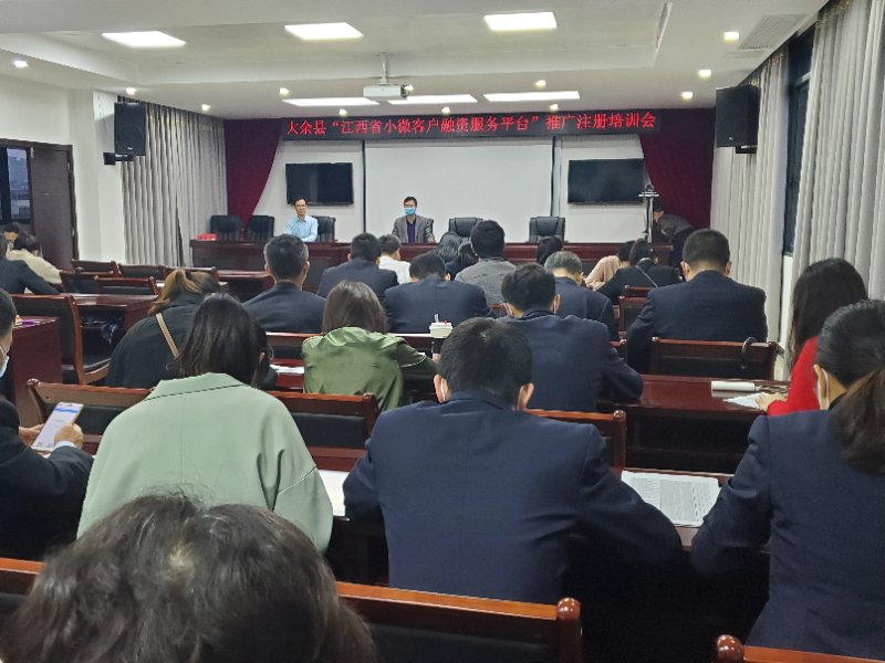 本站讯 为加快推进“江西省小微客户融资服务平台”推广运用,4月21日,大余县金融工作局联合人行大余支行再次组织县相关行业主管部门,以及县各银行业金融机构相关工作人员共计50余人开展了平台用户注册培训会,引导相关工作人员广泛宣传发动县域小微企业、个体工商户等实体经济主体注册平台用户,解决融资需求,扩大生产经营。