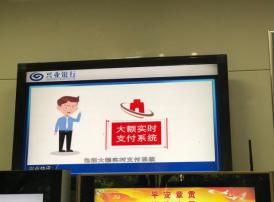 网点LED屏循环播放“央行支付、服务大众” 、“央行支付,服务千家万户”等宣传标语。