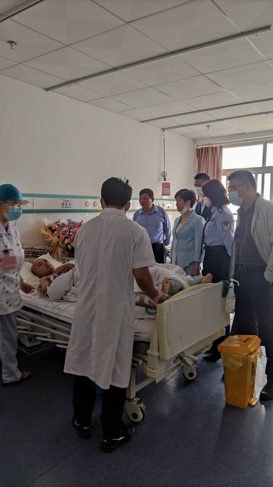 本站讯 9月25日上午,太平人寿赣州中支总经理匡晓媛、太平养老赣州营业部负责人游思林一行前往赣南医学院第一附属医院,看望慰问英勇负伤的公安民警张毅,代表太平人寿、太平养老送去亲切关怀、慰问。