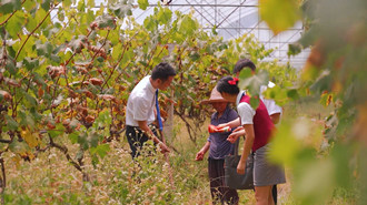 在赣州市沙石镇翡源生态农业生态园,几名工人正在忙着搭建果园棚。