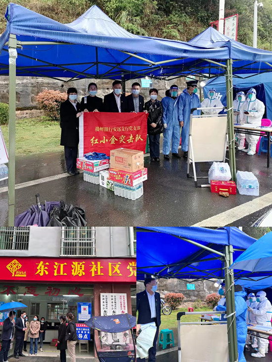 3月22日上午,安远支行党支部书记组织党员干部前往东江源社区、高速入口看望冒雨奋战在疫情防控第一线的工作人员,并为他们送去饼干、牛奶、泡面、矿泉水、口罩等物资,用实际行动助力防疫工作。