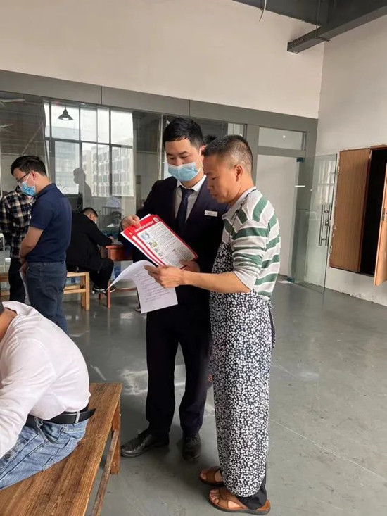 九江银行于都支行深入工业园区进行宣传,由支行党员志愿者及青年志愿者担任宣传人员,前往赣州金腾电子有限公司、爱孖狮服装有限公司等,为厂区人员发放宣传折页、宣讲金融知识,支行工作人员重点围绕消费者各项法定权利、维权方式和渠道、支付安全、防范电信诈骗、非法放贷等内容对厂区工作人员进行了重点宣传讲解。
