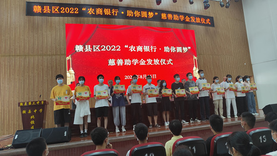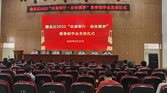 本站讯 8月25日,赣县区2022年“农商银行·助你圆梦”助学金发放仪式在赣县中学北校区科技楼举行。区领导邹隆春,相关单位领导,师生代表,以及受资助的学生参加活动。