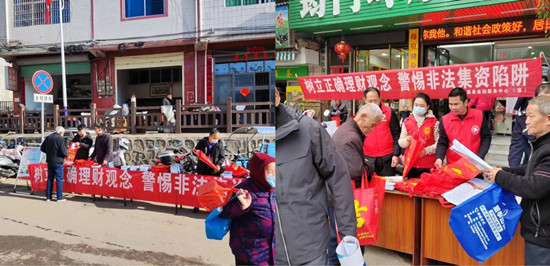 本站讯 岁末年初,为进一步加大防范打击非法集资宣传力度,会昌县金融服务中心组织相关部门联合开展“守住钱袋子 过好幸福年”宣传活动,提醒广大民众远离非法集资,守护“钱袋子”,过一个平安祥和的春节。
