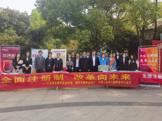本站讯 为积极响应江西证监局和江西证券业协会《江西证监局关于开展“3.15投资者保护”主题活动的通知》的文件精神,于3月15日上午由中国证监会江西监管局、江西省证券期货业协会、赣州市政府金融办、中国人民银行赣州市中心支行共同举办“全面注册制,改革向未来”十一地市同频共振教育主题宣传活动,在赣州市南门口东园及中央生态公园两地拉开帷幕,赣州市政府金融办、中国人民银行赣州市中心支行及辖区30余家证券期货经营机构近150人参加了本次宣传日活动,服务投资者300余名。
