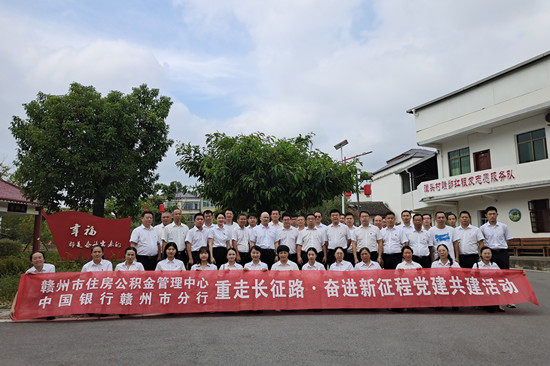 本站讯 为进一步发挥党建引领作用,构建优势互补、互相促进、共同提高的党建工作新格局,9月12日-14日,中国银行赣州市分行与赣州市住房公积金管理中心共同开展“重走长征路·奋进新征程”党建共建活动。赣州市公积金中心机关党支部、共建单位领导、各分中心党支部书记及党务干部、驻村第一书记,赣州中行及各县支行相关负责人等80人参加本次活动。