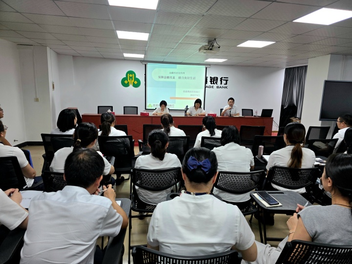 总行组织召开金融教育宣传周工作推进专题会议,领导班子、风险合规部成员、各支行负责人、一线员工代表参会。